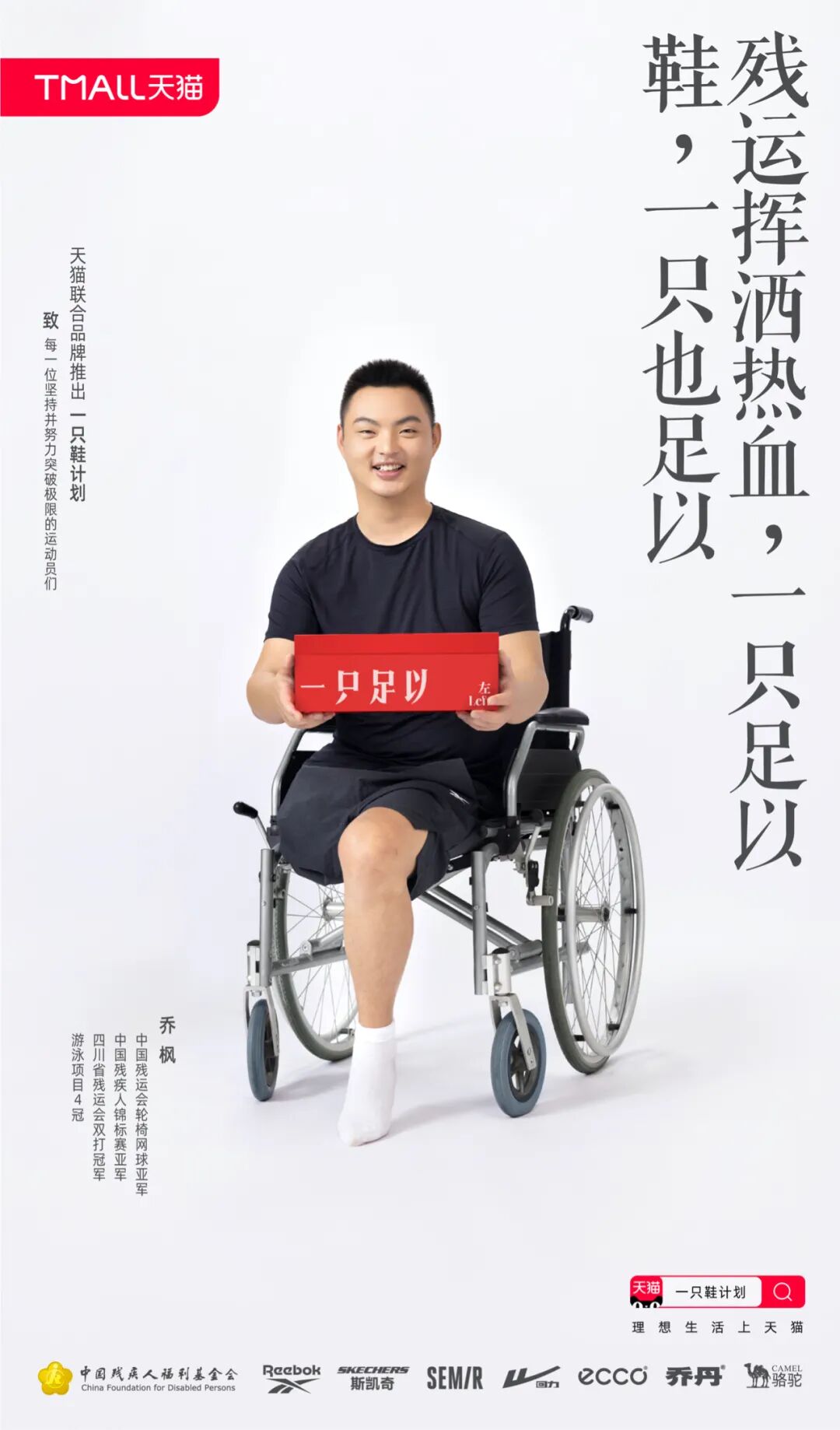 天猫联合运动品牌在10月17日推出了“一只鞋计划”:一只足以,把很多人都会忽视的单脚人士买一双鞋子的问题给出了解决办法。对弱势群体的关爱是平等对待,期待更多的人文关怀。