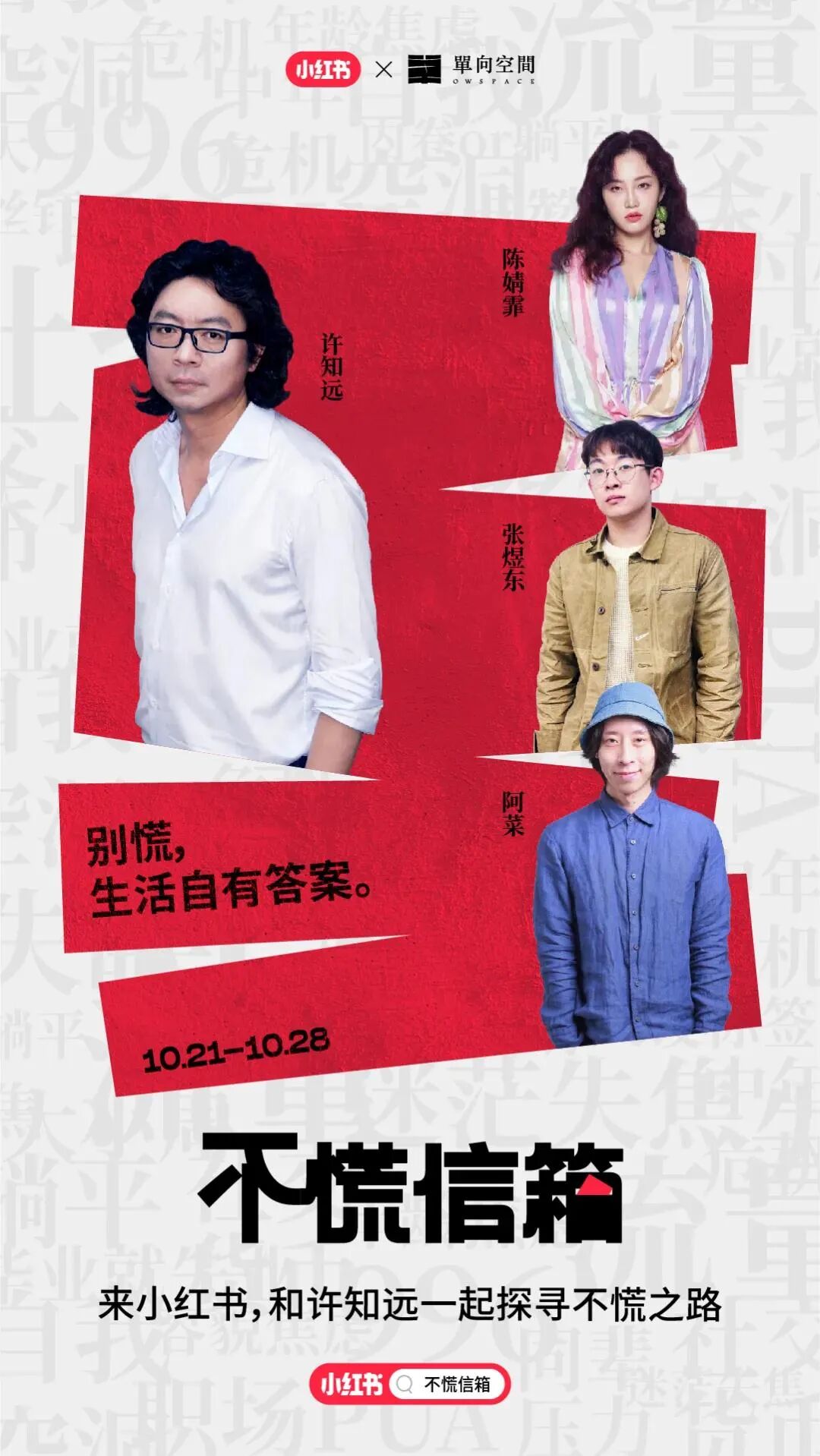 小红书联合单向空间,邀请许知远作为不慌信箱的发起人,洞察这届年轻人的焦虑痛点,推出《不慌信箱》系列短片。同时,小红书还在 App 上线「不慌信箱」活动,用户参与站内话题互动,还能得到许知远本人的真诚回应。