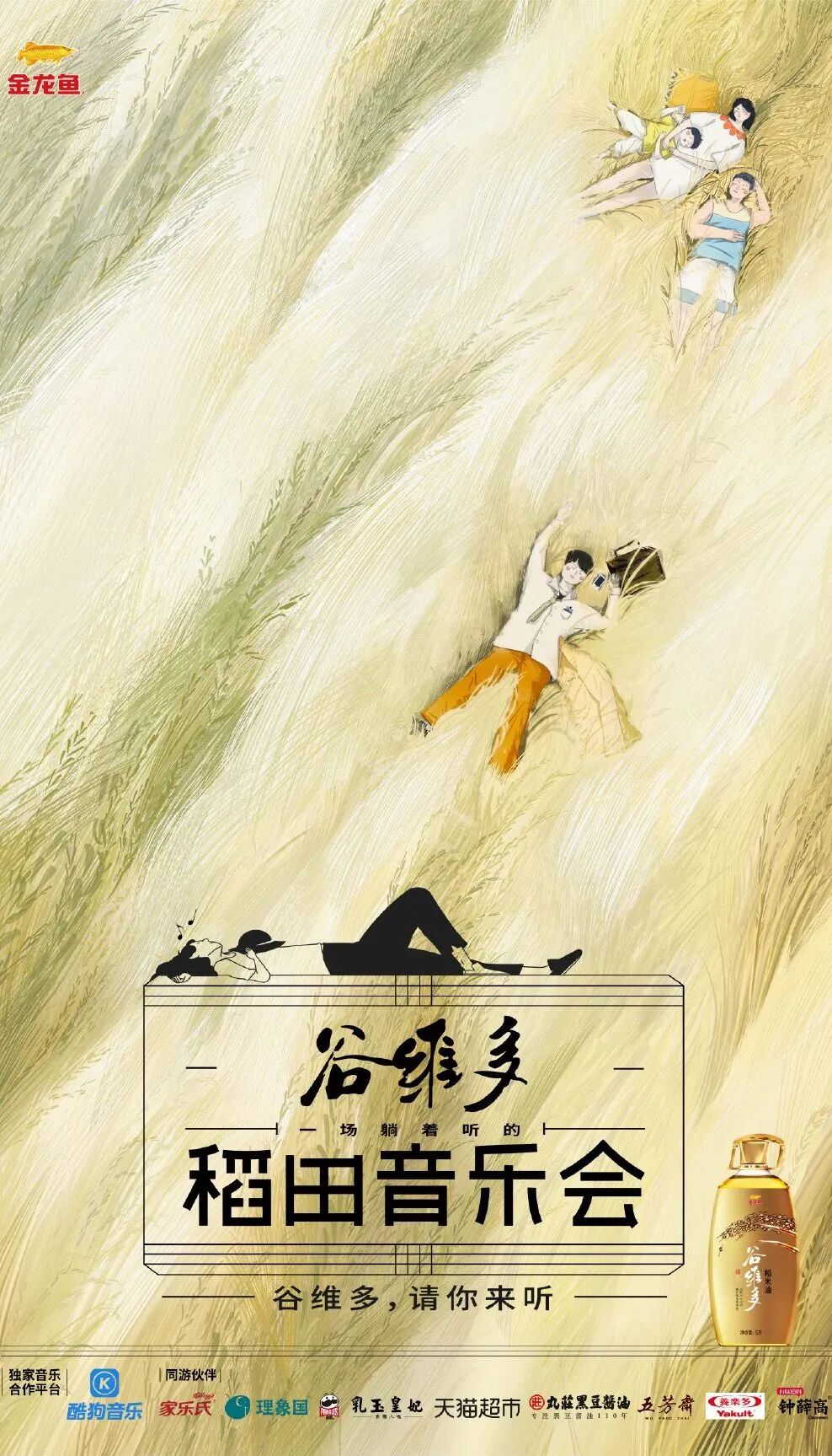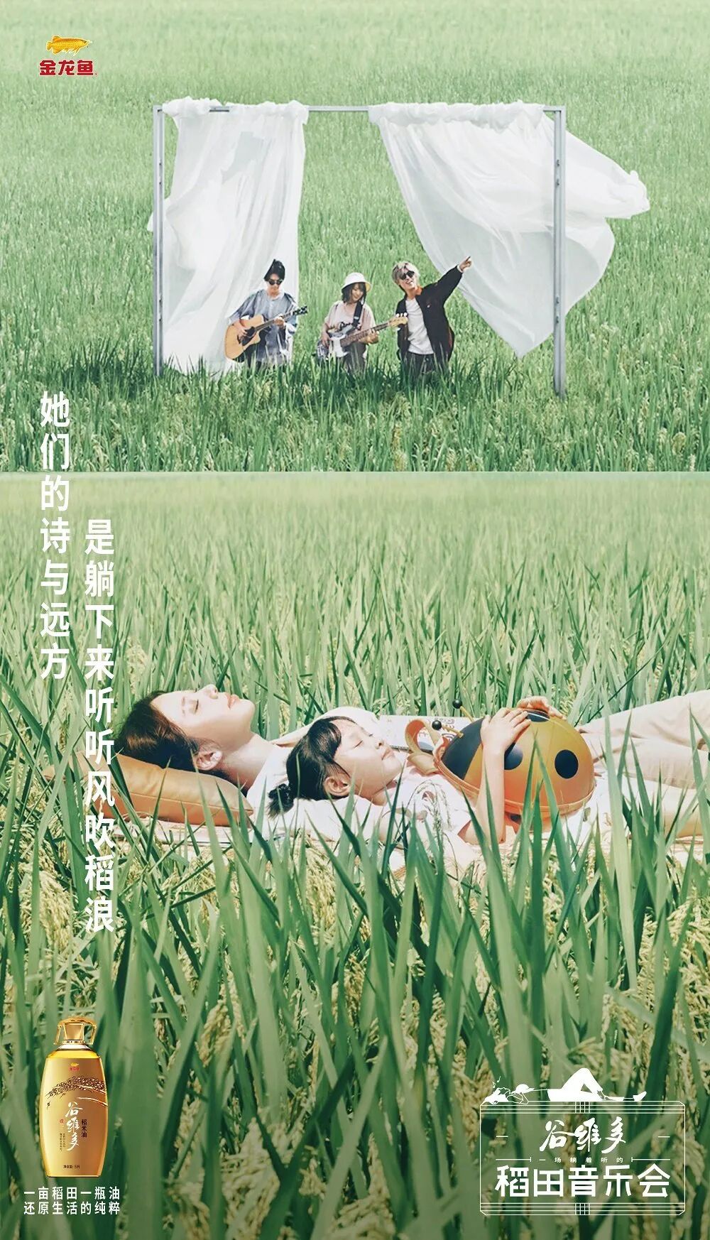 生活纷繁嘈杂,金龙鱼谷维多稻米油联合酷狗音乐、天猫超市、钟薛高、五芳斋、理象国、老娘舅、品客大叔 Pringles、乳玉皇妃、丸莊黑豆酱油等众多品牌,以金黄的稻田为舞台、蓝天白云为布景,共同打造了一场可以躺着听的「稻田音乐会」,邀请消费者一起「躺平」片刻,卸下压力,重拾生趣,回归自然的自己。据悉,除了观看音乐表演,在活动现场消费者还能逛市集、体验多种美食。