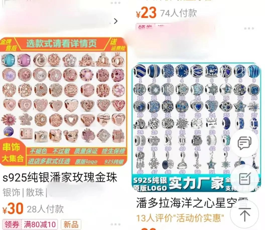 还有铁粉绝望地发现,自己费尽心思搜集到的绝版宝贝,成了淘宝商家“出一款抄一款”的淘宝货。并且,花一两百块钱就可以穿一串真假难辨的同款。