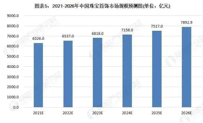 说起来,就算是潘多拉最风光的2017年,其在中国市场的销售增速也开始放缓。要知道,即便在经济回暖的2020年下半年,潘多拉在中国的销售依旧下滑了23%。那么今天,潘多拉为什么还要信誓旦旦宣布,长期目标是在中国市场营收翻三倍呢?据数据显示,未来5年中国珠宝行业将依然保持增长趋势。预计2026年,我国珠宝首饰行业市场规模将在7892.9亿元。