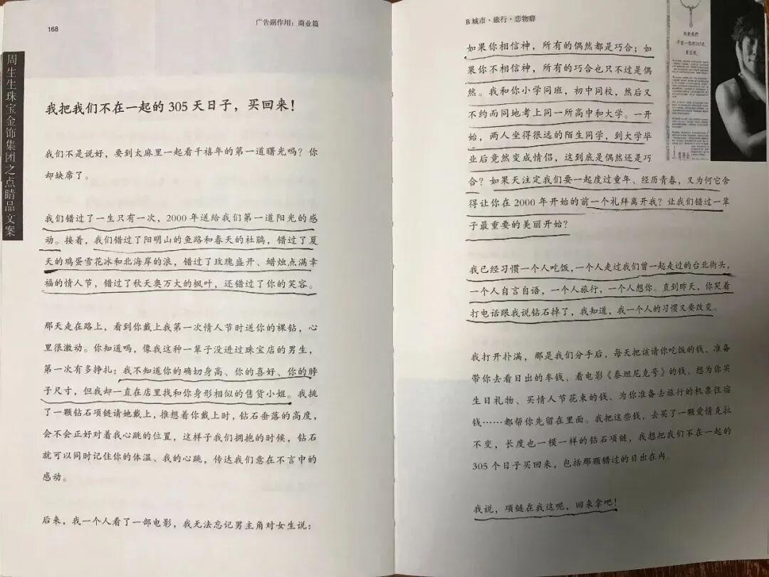 据作者肖陆峰透露,这段文案是借鉴了李欣频为“周生生”写的长文案《我把我们不在一起的305天日子,买回来!》。