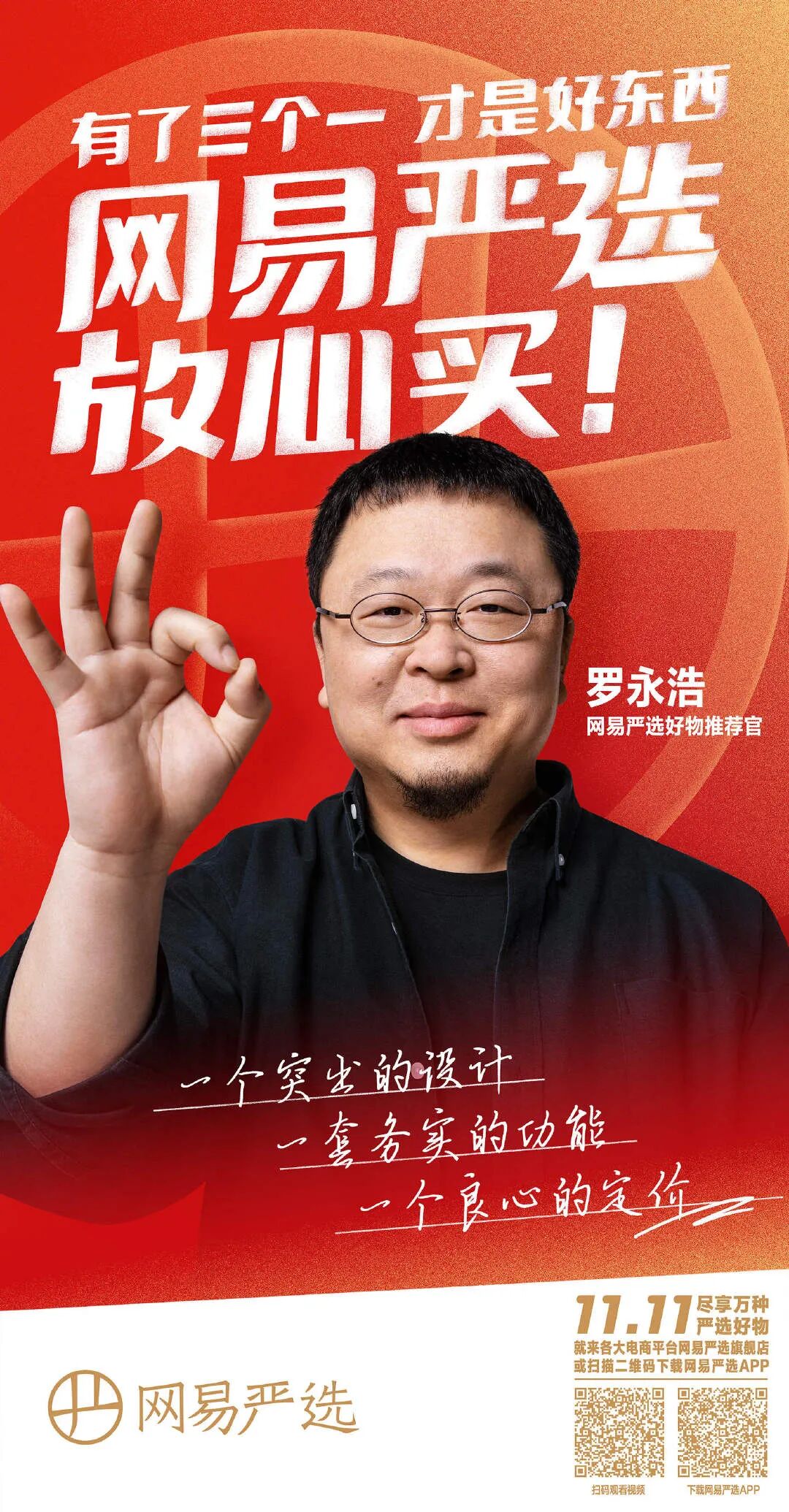 同时,网易严选通过广告片深度挖掘罗永浩不为人知的一面,将「怕猫」、「不会颠勺」「限高」等真实而有趣的人设标签与产品卖点深入结合,加强了片子的吸引力与喜剧效果。据悉,除了出镜品牌 TVC 外,罗永浩还出任网易严选双十一好物推荐官,还将在其直播间开设网易严选品牌专场。