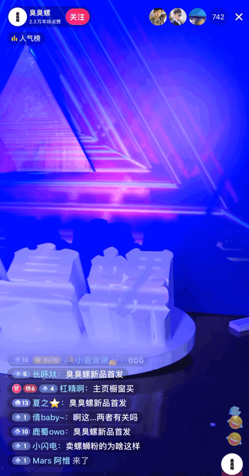 是李佳琦一边敲黑板,一边大喊“美眉买ta”?是流量明星们坐在镜头前尴尬口播?还是主播们举着商品吆喝“宝宝们,拍1号链接送XX”?这次,臭臭螺的抖音直播首秀,是咱没见过的“船新版本”。别的品牌直播四件套是背景板、打光板、展示桌、小蜜蜂,一个小角落就能播一天。而臭臭螺直接斥巨资打造了沉浸式秀场舞台,看看这现场效果,一整个“下血本”的大动作!