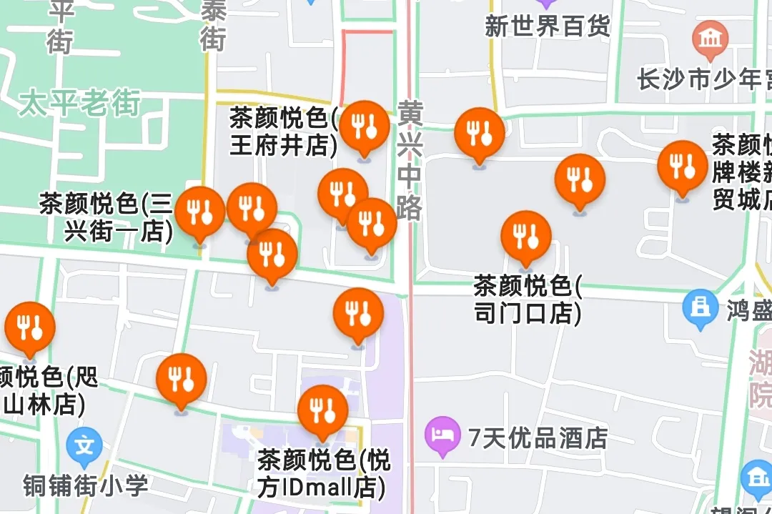 而在长沙网红步行街1公里多的路程,门店数量累计超过了20家,将一众竞争对手远远甩在身后。