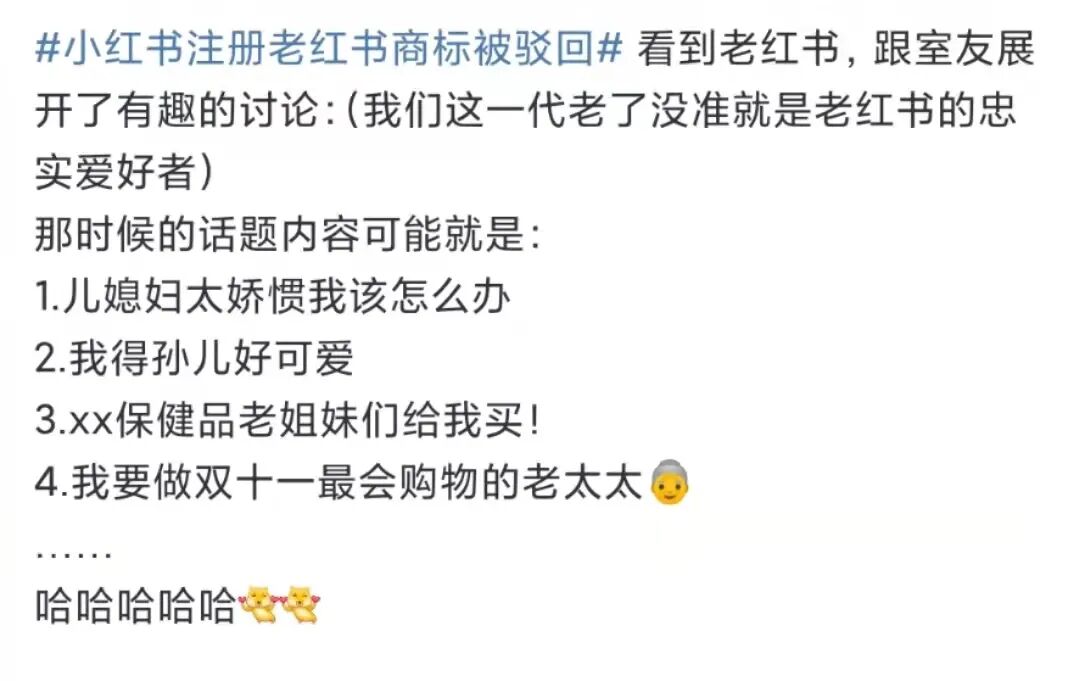 什么?小红书注册“老红书”商标,还被被驳回了?这也太好笑了吧。