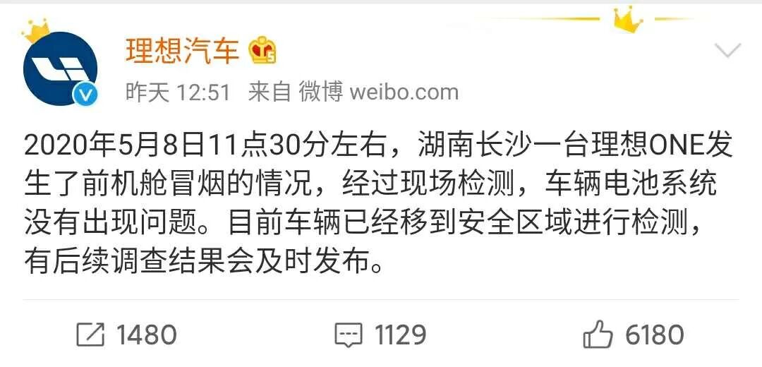 理想汽车创始人李想未曾想到,理想ONE会这样“火”了。5月8日临近中午,湖南长沙街头一辆理想ONE发生自燃,从网络上流出的视频可看到,车辆的前部被浓烟和明火所包裹着。车主随后对媒体表示“这车刚买回来不久,只上了临时牌,没想到就着了”。很快,理想汽车官方就在官方微博上对此进行了回复,表示经过现场检测,车辆的电池系统没有出现问题,目前车辆已经被转移至安全区域检测,后续调查结果会及时公布。