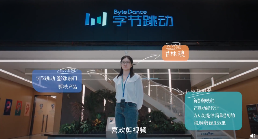 视频中6位员工的故事是基于字节跳动员工的真实故事,在结尾处还有故事原型“现身说法”,讲述在字节跳动工作的收获。