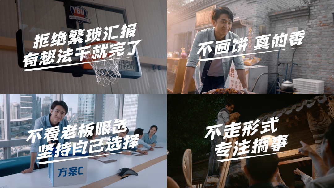 短片不仅从内容上洞察Z世代求职痛点,在广告形式上,也通过炫酷的镜头切换、轻快的节奏、不同主角的混剪,增强了故事感染力和张力,契合了年轻人的审美。