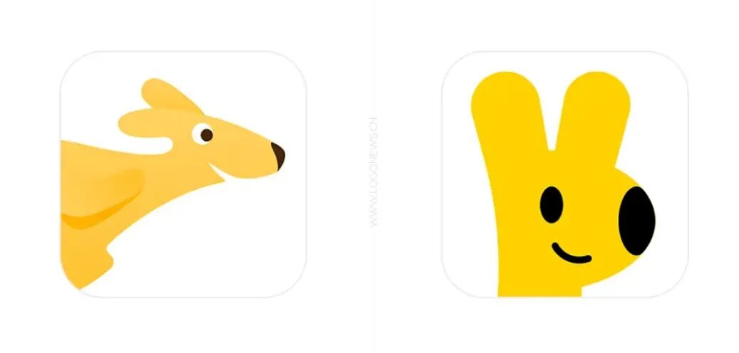 旧版logo的袋鼠做奔跑状,仔细看还有一点锁骨,是骨感的可爱。再来看新版logo,袋鼠整体色彩饱和度变高了,耳朵变大只留头部,颜色也只剩黄黑两种色系。真是应验了那句「好看的锁骨千篇一律,有趣的耳朵弹来弹去」。不过新版logo又像袋鼠又像大小眼的兔子,倒有点“一鱼两吃”那意思。