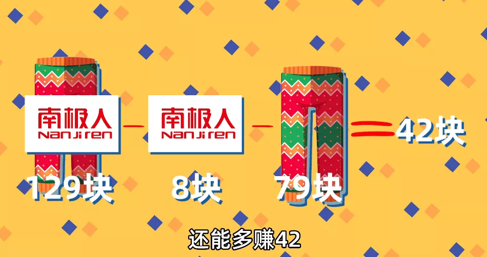 即便如此,原本79元的内衣在加上南极人吊牌后可以卖到129元,扣除8元的商标费之后仍然能够多赚42元。