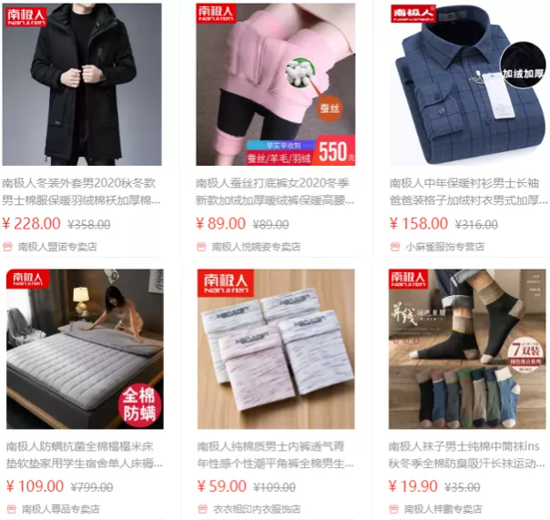 拥有了一定规模的南极人开始在线上形成统一阵营,进行大规模的价格战。而如果你在电商平台上搜索保暖内衣,出现在前列的品牌几乎都是南极人的产品和店铺。