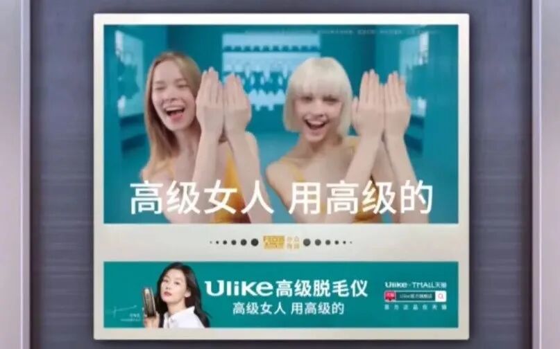 今年上半年,Ulike在电梯和楼宇投放了一则广告,其中“高级女人用高级的”这句口号引起了很多人极大的不适,大家普遍认为这句口号在一定程度上物化了女性形象。