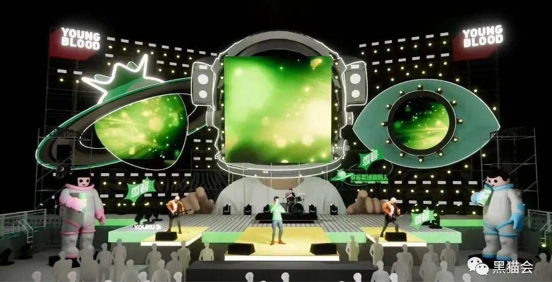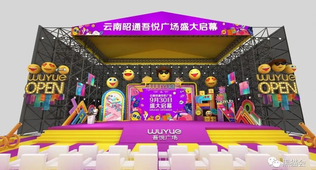 将活动的主题进行提炼和具象化,最后体现在舞台设计上。例如各种动物的形象、日月星辰、人体等。