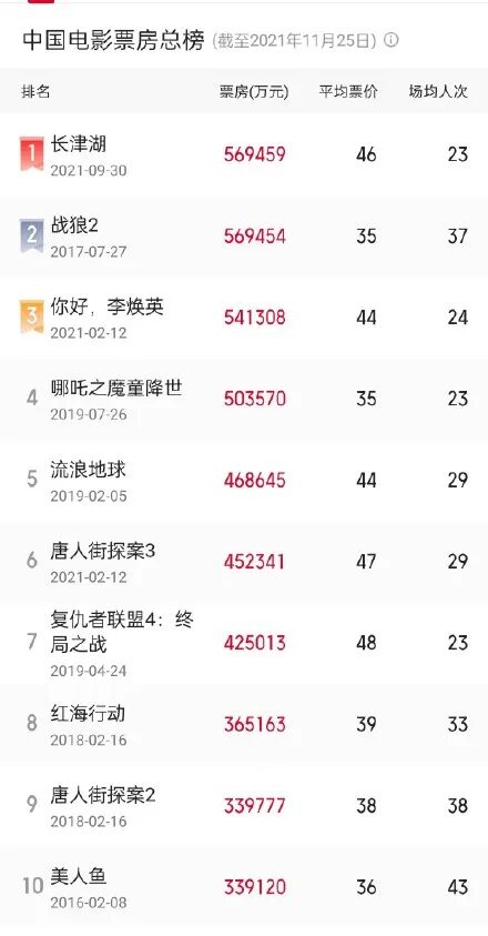 从这满满的交接仪式感中,我们可以看到中国电影人的薪火相传和特有浪漫,以及他们对中国电影欣欣向荣、更上一层楼的美好祝愿。如今,《长津湖》登顶中国影史票房冠军已成既定现实。这部影片也成为了不少观众心目中的电影“天花板”。那么,在这么多影片中,你还记得位于中国影史票房前列的,都有哪些优秀作品吗?