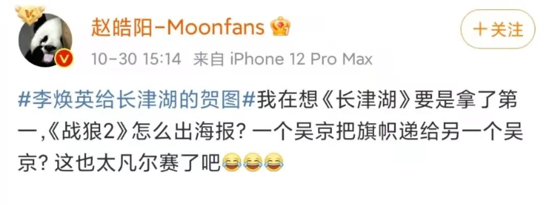 由于两部影片的主角都是吴京,大家对庆贺海报的解读也是相当有意思。