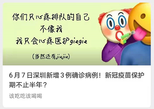今年发现的宝藏官方号深圳卫健委也把热点玩得相当炉火纯青。倒不是说去讨论事件,他们是做成了各种表情包封面进行调侃——