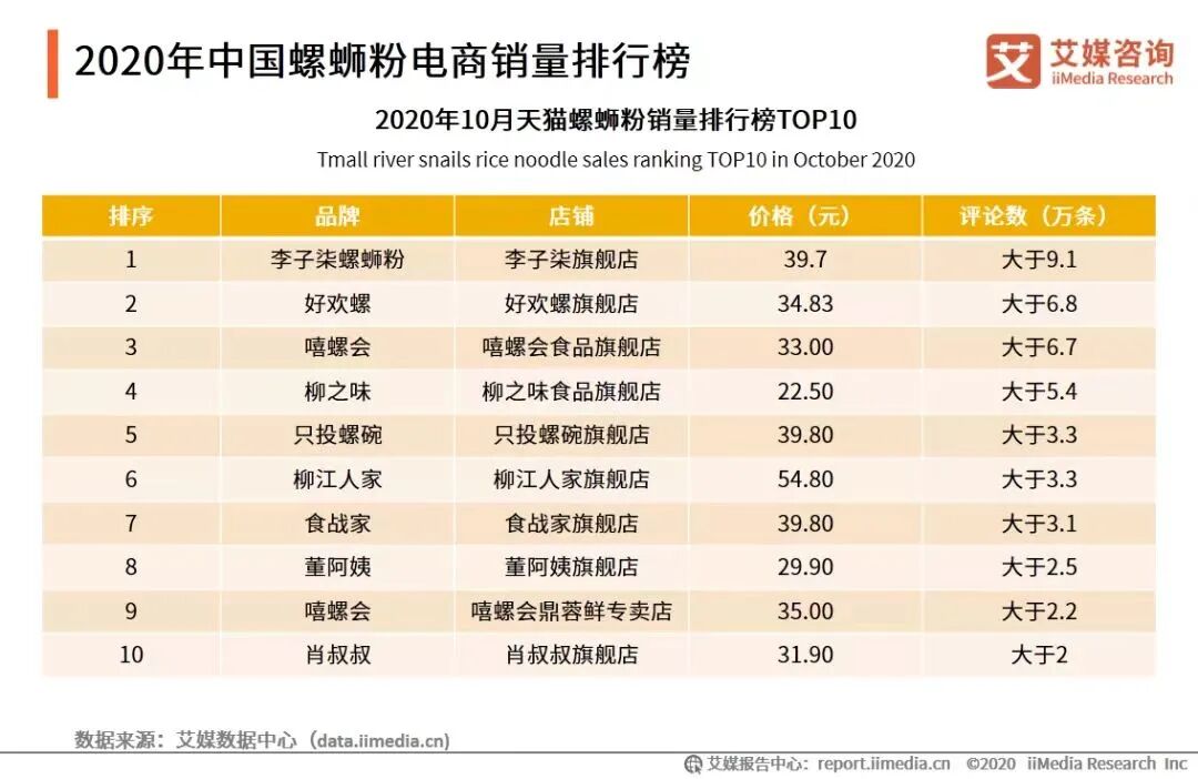 好欢螺官方表示,其与薇娅等主播合作,累计卖出接近500万的销售额。据艾媒咨询数据显示,2020年中国螺蛳粉电商销量排行中,好欢螺位于第二名,仅次于李子柒牌螺蛳粉。