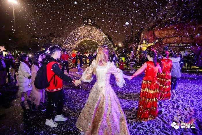 新春狂欢「舞狸花花游园会」:能让一家人从早玩到晚的,除了游园会,还有谁!浪漫降雪,仿佛在“童话世界”,举起手机就是一张唯美的照片。