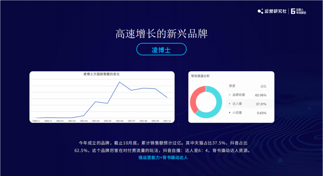第一个拆解的品牌是凌博士,截止到 10 月底,累计销售额过亿,其中天猫渠道:抖音是 4 : 6 的状态。
