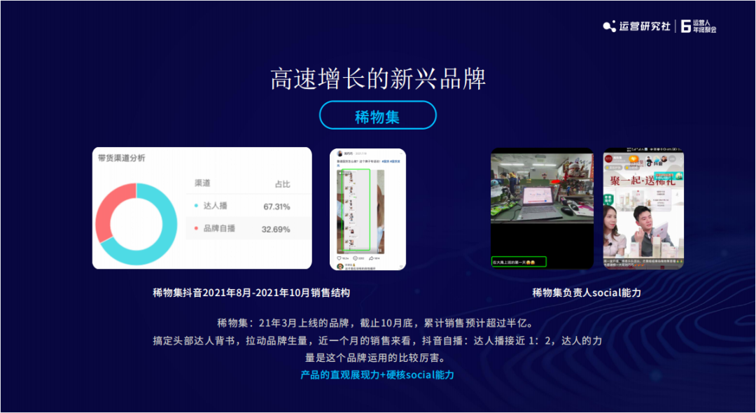从稀物集在抖音上的达人播和品牌自播,产出的销量比例是 7:3 就可以看出来。