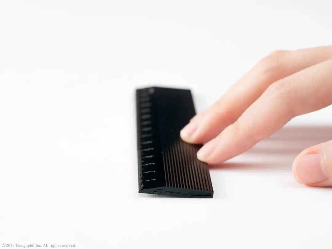 适合裁切作业,具有防滑功能的铝尺。背面带有防滑垫,只需按压直尺中心便可发挥有效的防滑功能。按压下侧便可使防滑垫悬空,从而顺利地进行移动。激光雕刻的全尺身刻度易于用户测量高度和纵深。此外背面内置磁石,方便收纳。
