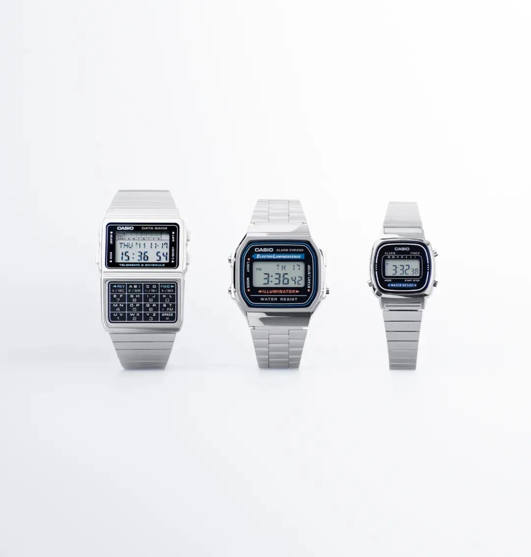20多年来一直保持当初的设计至今,这是在全世界持续销售的数码手表的标准款。设计原模原样表现了时刻和闹钟,计算器(※仅有DBC-640有此功能)等基本功能,可以说它是众多数码手表的原型。复古的金色款在日本和欧美对时尚敏感的年轻人中依然受到高度评价。