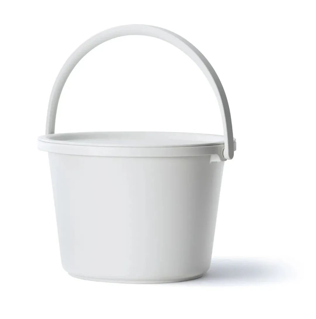 考虑到洗涤物品浸泡、抹布清洗等使用方式,这一水桶采用带有桶盖的广口造型。以合适的桶高设计对应直接从水池接水的使用效果。此外,桶内侧还标有以L为单位的数字刻度,方便控制水量。