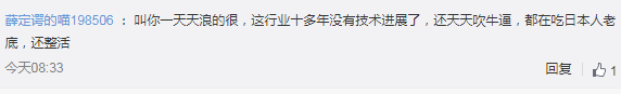 “ 叫你一天天浪的很,这行业十多年没有技术进展了,还天天吹牛逼,都在吃日本人老底,还整活。”