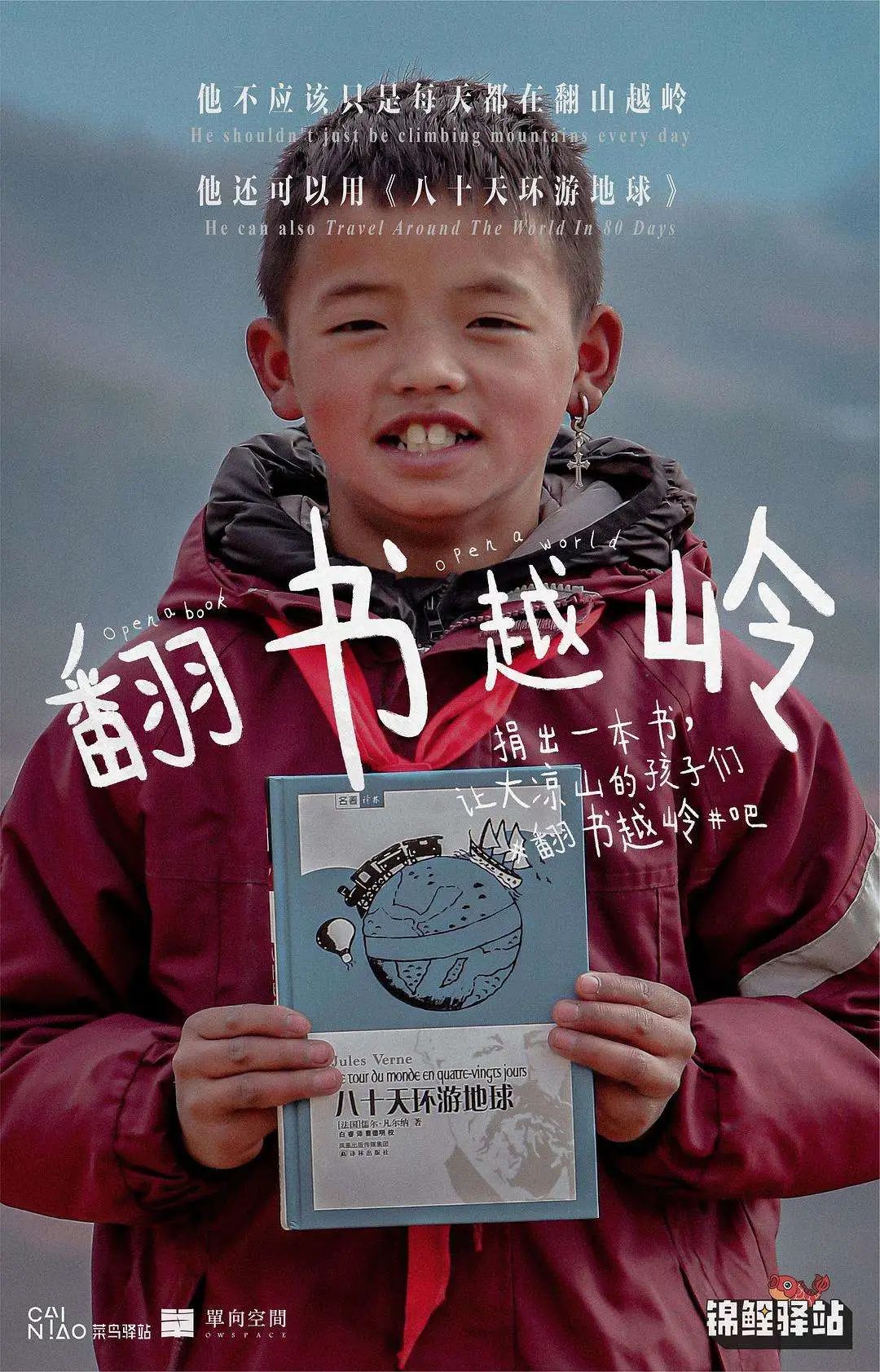 另一个在推广上比较出彩的是“翻书越岭”。它是2021年3月菜鸟驿站联合单向空间和Heaven&Hell一起向全社会发起的公益活动。活动形式是向大家征集闲置文学书,号召大家一起捐出一本书,让孩子们见到更大的世界,成为更好的人。