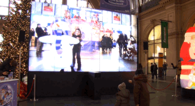 广场中央一块巨大的LED液晶屏幕上,圣诞老人与雪人正吸引着过往游客纷纷驻足停留。