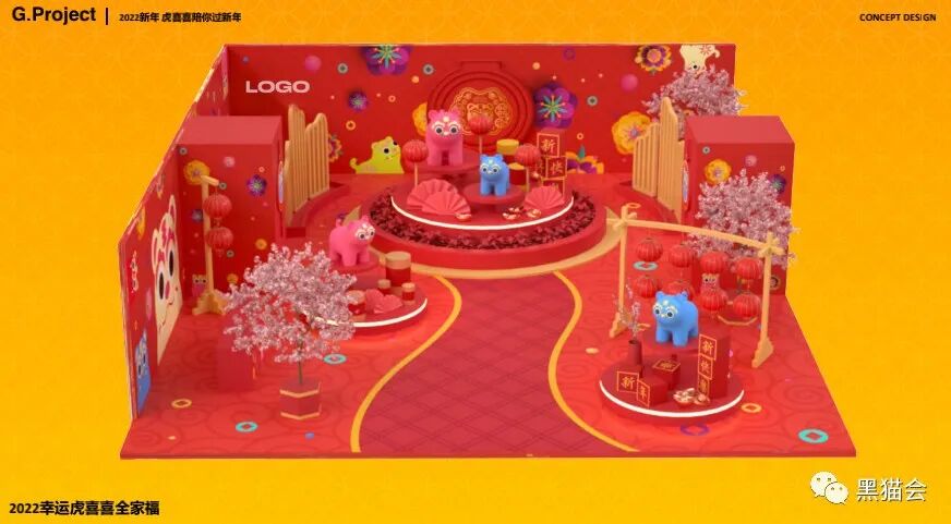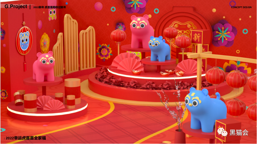 还可以使用一些红色、灯笼等元素来布置商场,结合2022年是虎年,那么来看看虎年美陈怎么布置吧。其实从元旦开始,虎年主题的美陈就已经可以策划了。