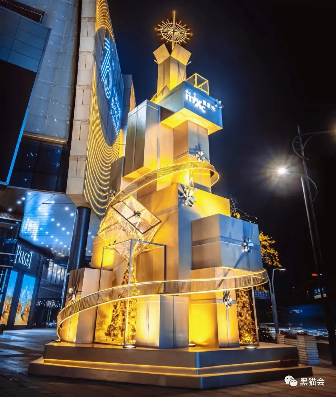 杭州万象城:以“Cartier礼盒”为灵感,打造7个美陈打卡点,整体营造的是一种金色调的高级节庆氛围。