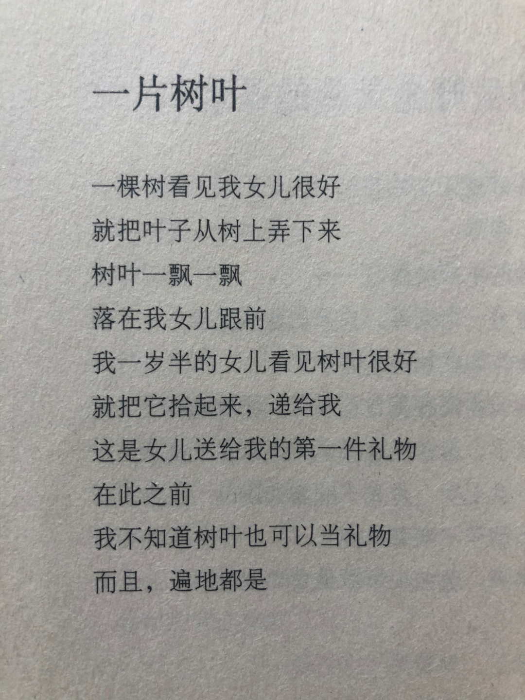 最后,分享一首小诗,出自诗人海桑写的《一片树叶》。