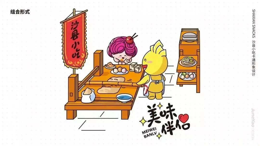沙县小吃一向接地气,拟人化的沙县大家族当然也是热热闹闹、人丁旺盛,看到它们熟悉的亲切感回来了。