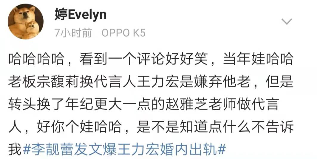 而且,当时宗馥莉刚说完王力宏年纪大,就找了年纪更大的赵雅芝合作,是不是也是在暗示网友什么呢?好你个娃哈哈,居然不提早告诉我。