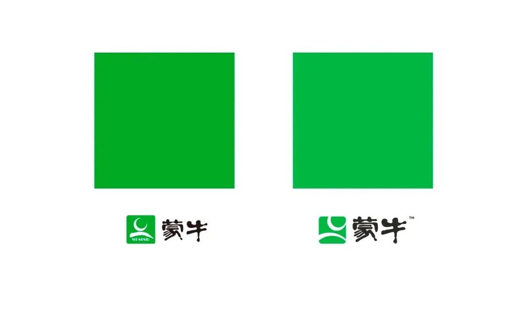 在新logo中,首先继续沿用上一版的左右结构,左边为图案。右边为中文字体;右边字体保留原来的隶书字体,但是整体放大。变化最大的是左边图案下面的“mengniu”字样取消;新设计继续沿用之前的牛角、草原、母亲河3个极具中国特色和蒙牛特点的元素。主颜色还是以绿色为主,蒙牛说:绿色大草原是蒙牛永远不变的底色,更是代表着蒙牛“生态优先、绿色发展”的社会责任担当。