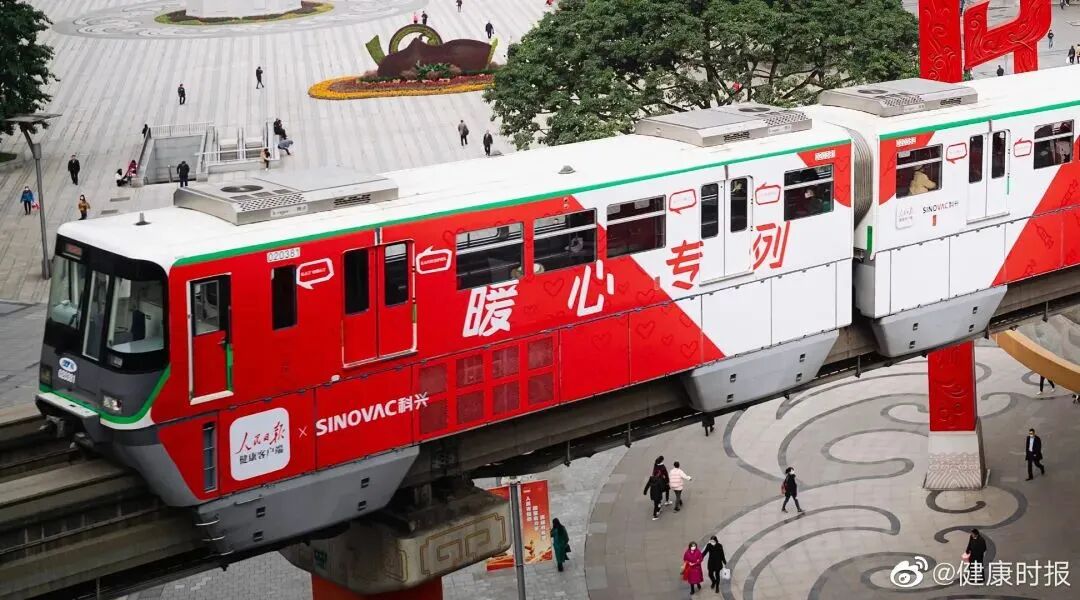12月1日,由人民日报健康客户端、科兴联合重庆轨道交通2号线,共同打造的“暖心专列”在山城里驰骋,如冬日里一抹暖阳温暖了山城人。