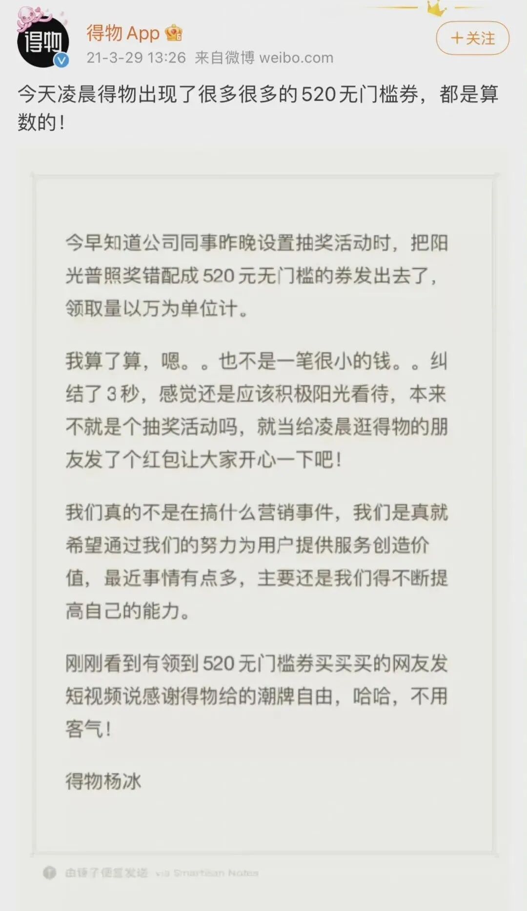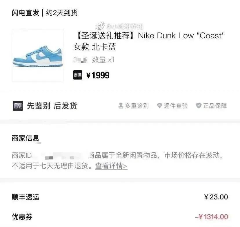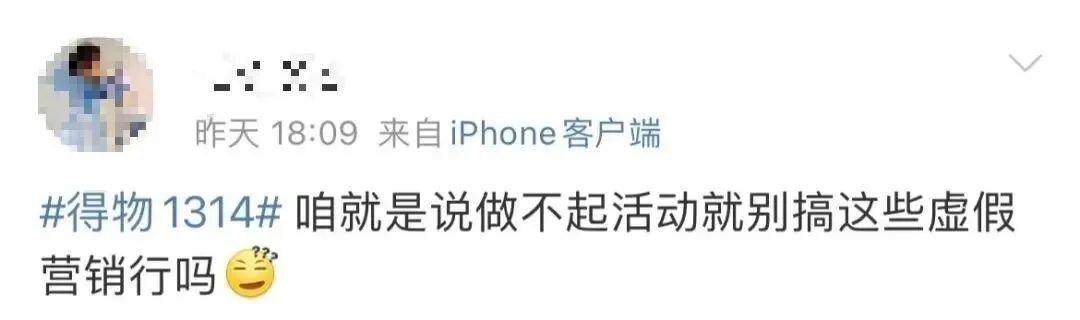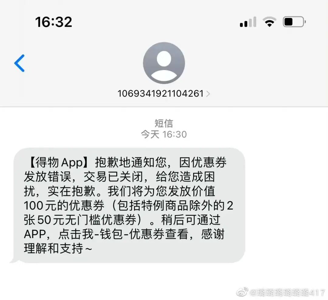咱不说,在交易订单已形成,甚至已经出现物流信息的情况下,得物半途截胡、中断交易,是否缺乏契约意识、违背合同法规;也不说,在平台首页确有“1314大额券”广告链接,吸引消费的情况下,得物又说取消优惠,是否构成虚假宣传、欺诈消费;咱就说,明明是你平台自己犯的错,为何要消费者承担无法收货的后果?
