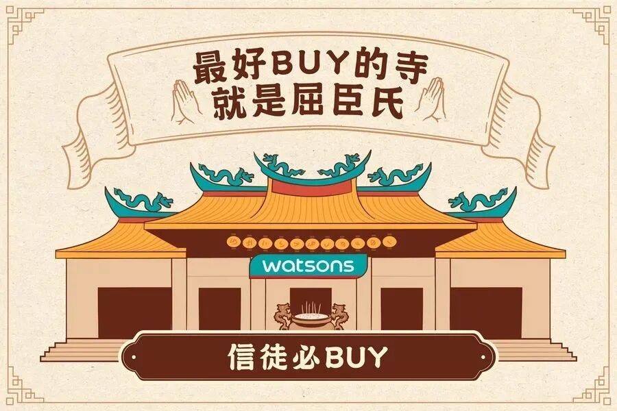 “子贡问政。子曰:足食,足兵,民信之矣。子贡曰:必不得已而去,于斯三者何先?曰:去兵。”到了这里孔子的回答却已经变成了“去冰”,原来孔子到麦当劳只会说“可乐去冰,谢谢”。《为你血诗》这个广告标题显然是脱胎于流行歌曲《为你写诗》,通过近似音来让观众产生联想。用“血”来指明女性月经,让观众瞬间明白这是卫生产品的广告。标题的谐音梗怎么能够,在海报展示出来的“诗”也要以谐音双关结尾。“那是番茄John”,连读起来便是“番茄酱”,表明这不是月经而是番茄酱沾在了裤子上;再看起来,“John”可以理解为这个同事的英文名,说明是番茄掉在了裤子上,造成了同事的误解,而非番茄酱。短短一句话,不过十字而已,居然就能包含两个谐音梗,也是不容易。“buy”即是其本意“购买”的意思,指明要去屈臣氏进行shopping,也音同汉语“拜”,衔接后面的“寺”,就是去寺庙烧香拜佛之意。要去哪个寺庙呢?后半句给出了答案——屈臣氏(寺),通过“氏”和“寺”的近似音,完成了屈臣氏这个品牌与寺庙的联系建立,完成了这个文案的创意。商品、服务:Dove 多芬日本植萃沐浴乳