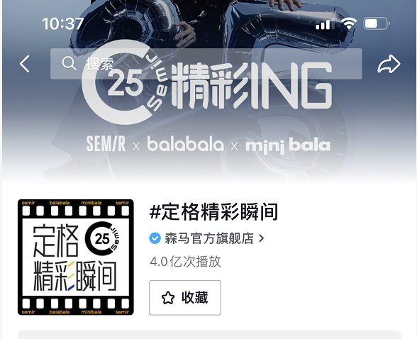 而在网络成为主流媒介的环境下,公益广告的内容和形式发生了很大变化,不断拓宽着公益的边界、在新时代创造着全新可能。最近,森马借品牌 25 周年庆的重要节点,开启了一场兼具艺术性和趣味性的沉浸式公益展,同时线上开启#精彩瞬间定格#挑战赛,年轻化的多样玩法,成功在海量营销中实现出圈。活动结束时,抖音话题播放量破4亿。