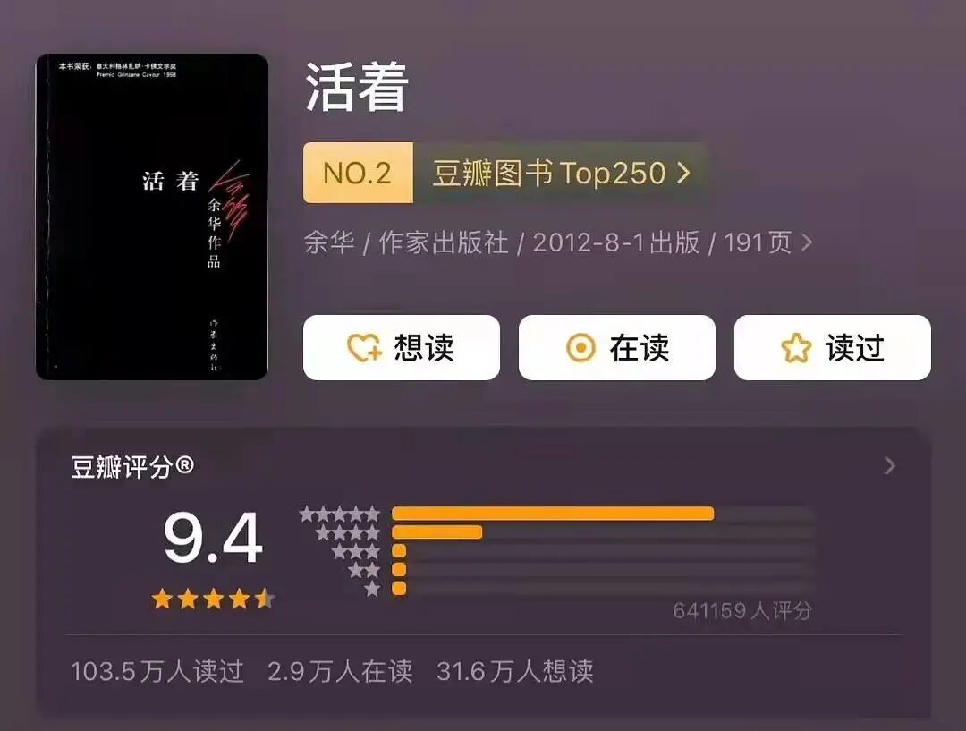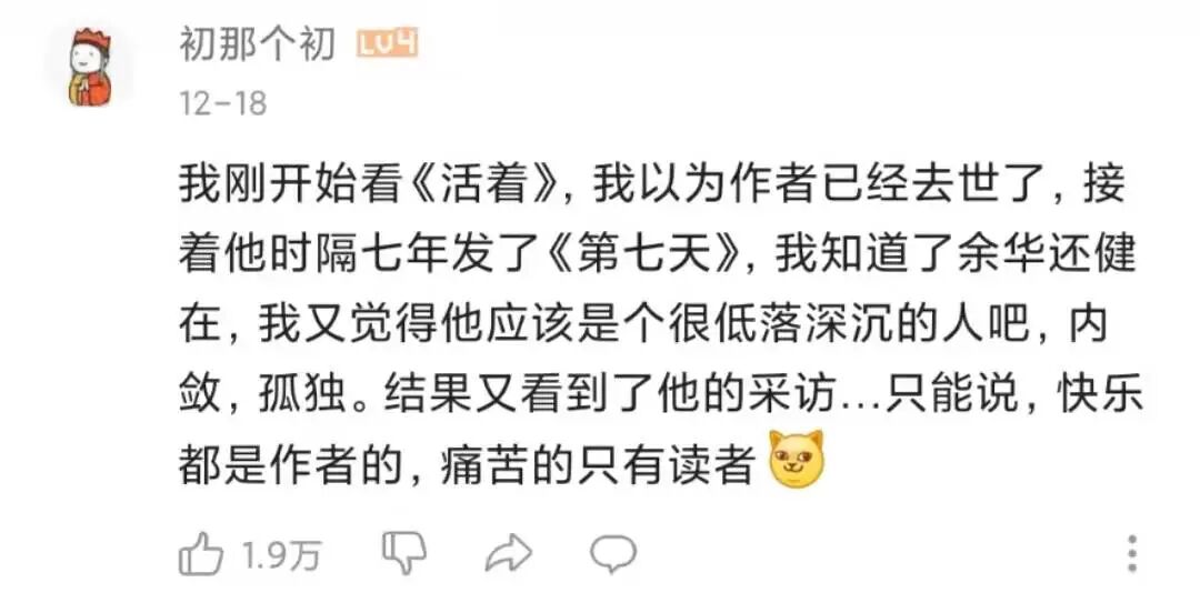 拿最近的采访来说,有up主问余华老师如果给《活着》打分,打多少分?