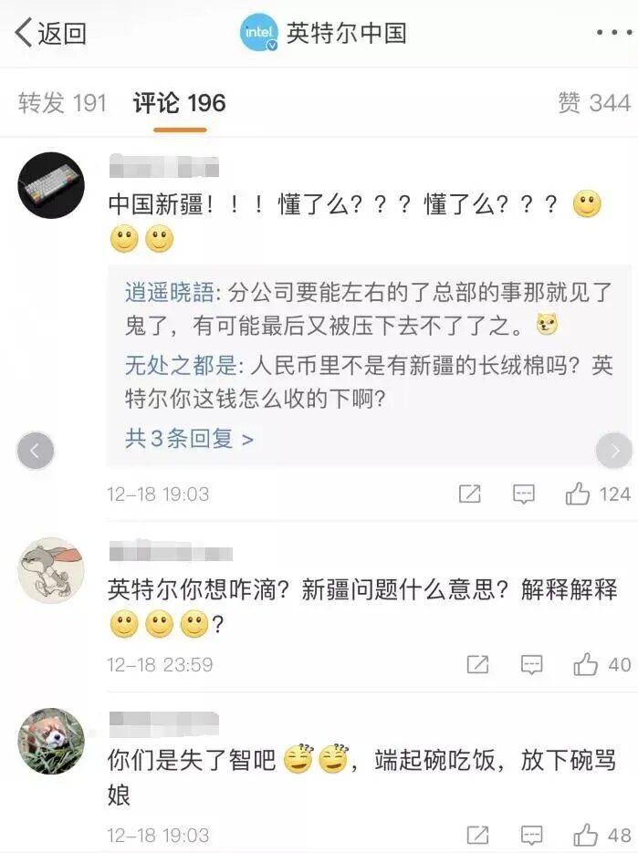 “英特尔你想咋滴?新疆问题什么意思?解释解释。”