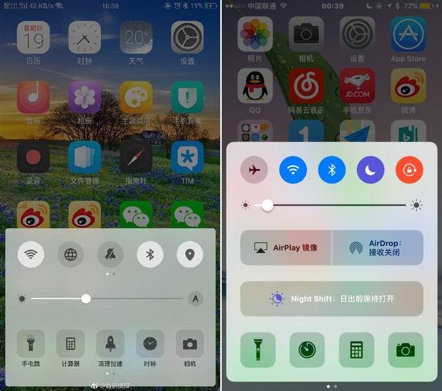 OPPO ColorOS 3.0与iOS对比 图/网络