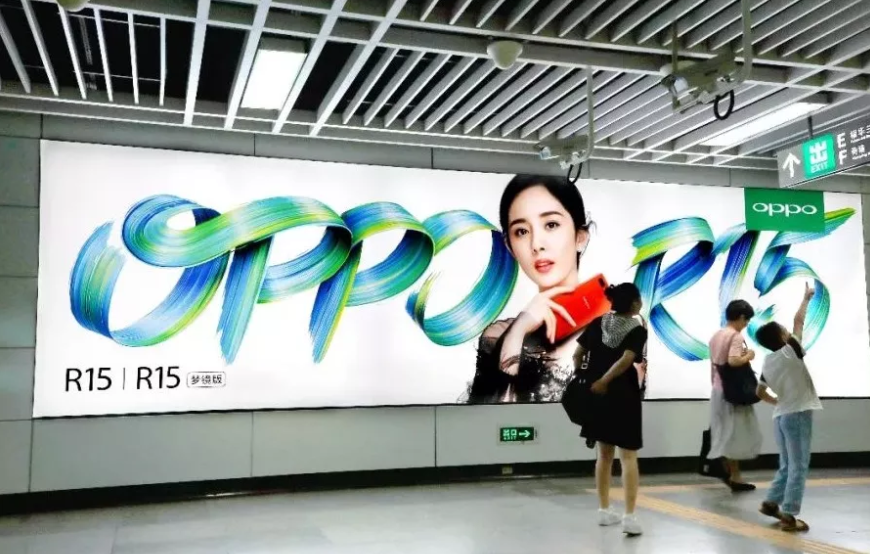 “你能想到的地方那会都投OPPO的广告,明星拿着OPPO手机摆Pose那种。数码港这种门店聚集地的公交站台、外墙是一定要铺的,公交车身也可以铺,还有商场的核心区域,人流比较多的地铁站,甚至小区里的广告牌……到处都有”