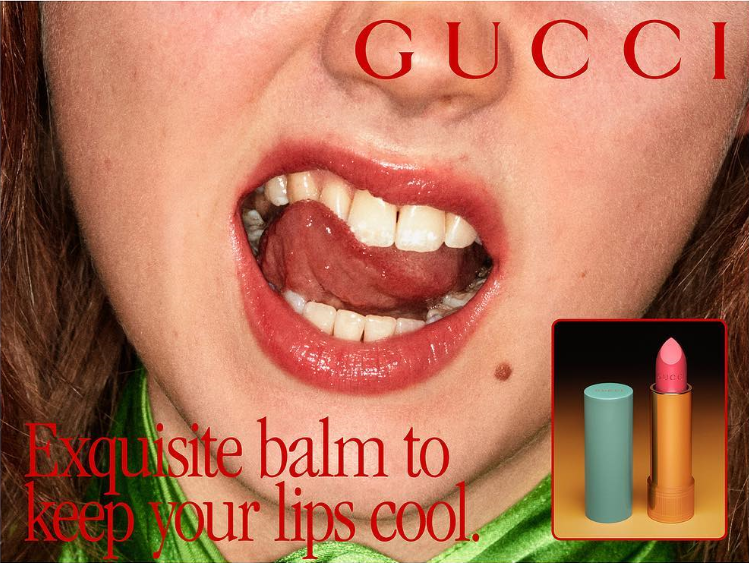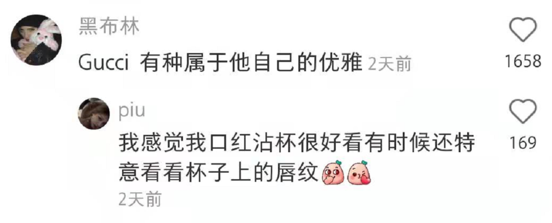 视觉上够冲突,理念上够大胆,精神上更自由,可以说是相当圈粉。不过这也不是 Gucci 第一次用沾杯的唇印这个形象,2019年5月,Gucci就曾在Ins发布过一组带有唇印的平面: