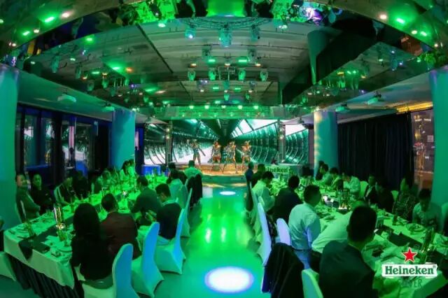 喜力选择将活动办在了这个黄浦江江畔的诺莱仕游艇会。长长的活动场地,正好连接通体银色金属感的圆弧形通道、互动区和晚宴区。