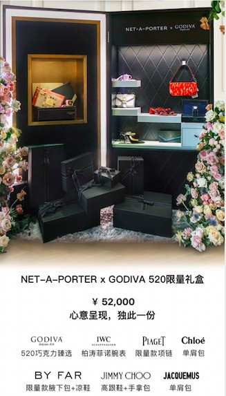 全球著名奢侈品电商NET-A-PORTER与比利时皇室御用巧克力品牌歌帝梵推出了全球唯一一款限量礼盒在天猫首发。这款礼盒高2米、宽1米,立起来比一人还高,除了歌帝梵的心形巧克力外,礼盒中还包含IWC 柏涛菲诺腕表、PIAGET限量款项链、Chloé 单肩包JIMMY CHOO 高跟鞋等礼品,一件包下全身出门行头,堪称全球最大的“表白礼”。