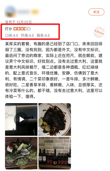 通过查询,运营社发现大众点评对精选评价也做了严格的审核准入:a. 通过审核,平台会对每条评价进行审核,评价发布时间的次日 24 点前可审核完成,广告、灌水、重复、违规、虚假等内容无法通过审核;并且不定期对精选评级进行回扫审核,不符合要求的会取消展示。b. 评价字数不少于 15 字,能够有效传递消费体验。