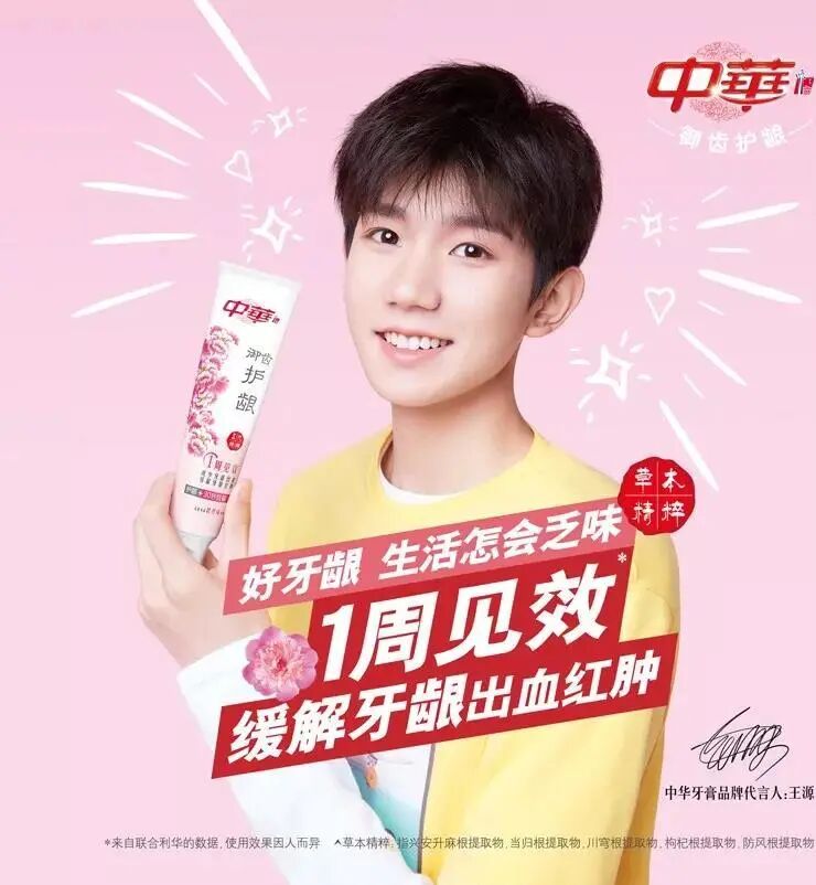 而且,在选择品牌代言人层面上,中华牙膏选的都是十分青春阳光的新生代力量,其代言人王源为粉丝经济的应用提供了一个极好的爆点。